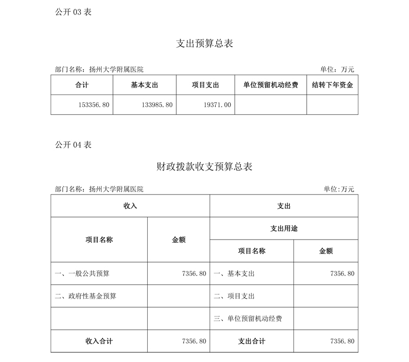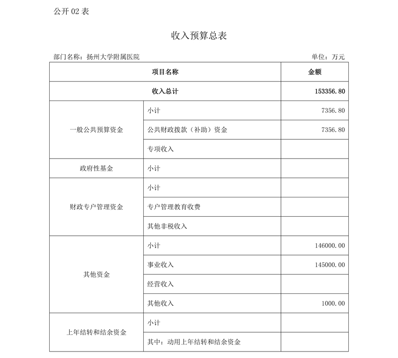 扬州大学附属医院2020预算公开