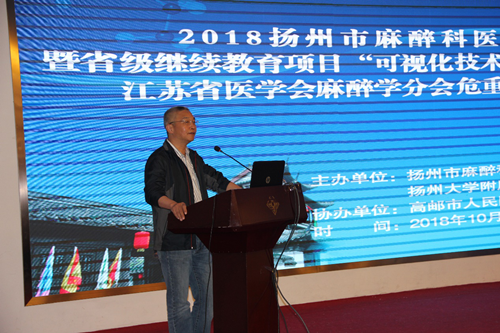 10月26日至28日,2018年扬州市麻醉医疗质控年会暨省级继续教育项目“可视化技术与麻醉精细化管理”培训班在高邮市成功举办。本次年会由我院麻醉科主办,来自扬州市及周边地区医疗单位近200名麻醉学代表参加。扬州市卫计委医政处处长孙德秋出席会议,江苏省医师协会副会长、我院麻醉科主任孙建宏主持会议。