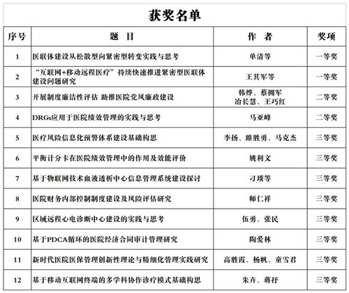 近日,淮河生态经济带组团发展城市(淮安市、扬州市、泰州市、盐城市)医院改革发展论坛暨四市医院协会2018年学术年会优秀论文获奖名单出炉,我院共有12篇论文获奖。其中,一、二等奖各2篇,三等奖8篇。同时,我院获“优秀组织奖”。