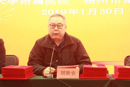院长刘歆农代表院领导班子讲话。他指出,2018年,医院在扬州大学的领导下,在省市卫计委的指导下,坚持把“推进医教融合,推动转型跨越,努力建设特色鲜明、区域知名的高水平医院”作为奋斗目标,不忘初心、逐梦前行,谱写了医院发展的新篇章。