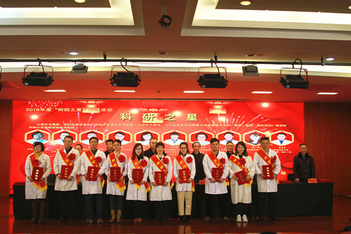 院党委副书记刘艳秋宣读“附院之星”表彰决定,丁永玲等十名同志获得“医疗之星”的称号;王静等十名同志获得“护理之星”的称号;王亚丽等十名同志获得“科研之星”的称号;王茂华等十名同志获得“教学之星”的称号;丁岩冰等十名同志获得“管理之星”的称号;冯洁等十名同志获得“服务之星”的称号;心血管内科等十一支团队获得“团队之星”的称号。院领导分别为各奖项获得者颁奖,并与获奖者亲切握手,勉励大家珍惜荣誉、不忘初心,为医院的发展再创佳绩。
