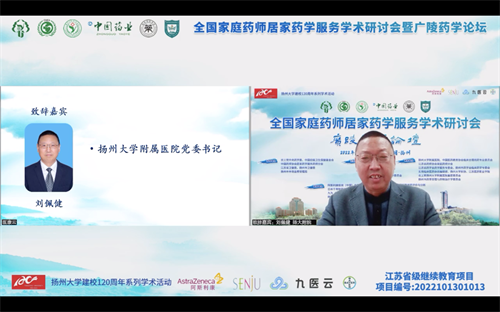 刘佩健介绍我院在推动居家药学服务开展和家庭药师制度建设上开展的工作。他指出,2020年我院帮助广陵区成立全国首家社区家庭药师工作室,同年举办全国家庭药师发展高峰论坛;2021年牵头制定《江苏省家庭药师居家药学服务规范》;2022年被评为国家卫健委首批家庭药师规范化专项能力培训基地。这些工作推动家庭药师居家药学服务工作的推广实施,满足了人民群众更高水平的健康需求。