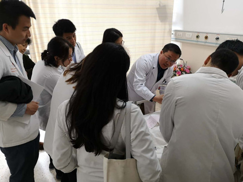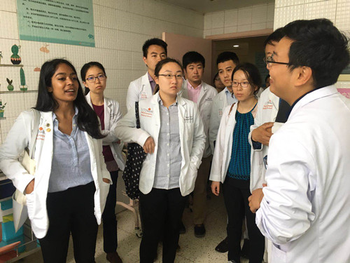 此前,为完成此次教学任务,教育处精心准备,邀请相关教研室带教老师认真备课,编辑英文版讲义。见习期间,留学生们先后在心血管内科、普外科、妇产科、中医科等科室参与临床教学查房、病例讨论及手术观摩,同时组织留学生与扬州大学驻点班学生进行了以“中美医学教育”为主题的交流座谈会。