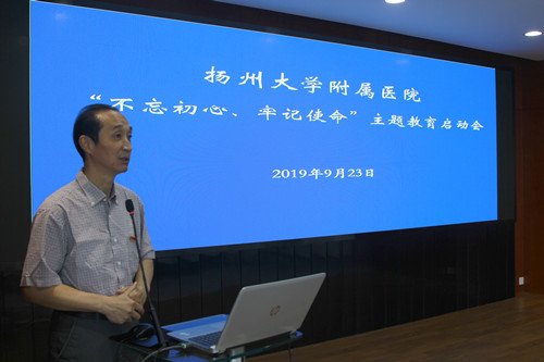 9月23日上午,扬州大学附属医院“不忘初心、牢记使命”主题教育启动会在西区医院第二学术报告厅举行。我院在扬院领导,党办、院办、纪委办、宣传处等职能部门负责人,各党总支书记、支部书记等参加会议。会议由院党委书记王炜同志主持。