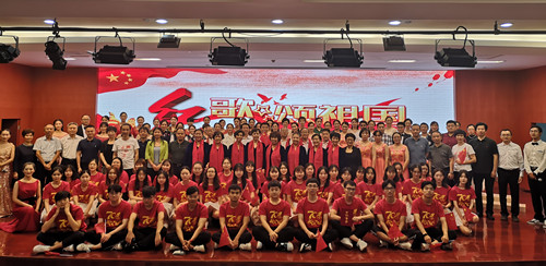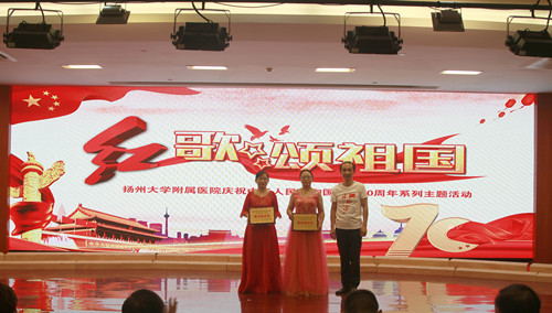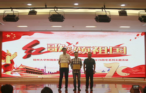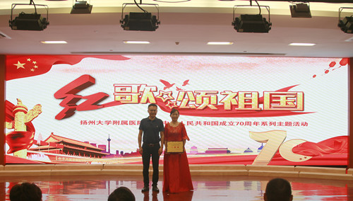 金秋送爽万里河山披锦绣,丹桂飘香各族人民庆辉煌。9月29日下午,我院在西区医院第一学术报告厅举行庆祝中华人民共和国成立70周年“红歌颂祖国”拉歌活动。在扬院领导、院各党总支演职人员、离退休职工代表、各科室职工代表、各院校实习生代表共500多人参加活动。