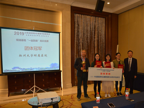 会议期间,还进行了住院医师“一站到底”知识竞赛等活动,该赛事旨在活跃学术氛围的同时,促进中青年麻醉医师相互学习、沟通。共有来自全省30家三甲医院的90位选手参赛,比赛内容涉及专业基础知识和历史人文等课外知识。麻醉科住院医师朱越、华胜男、吴梦悦以团队形式参与了该赛事,比赛中,他们沉着应战、认真答题,把握每一次抢答机会,连续守擂5轮到最后,获得冠军!