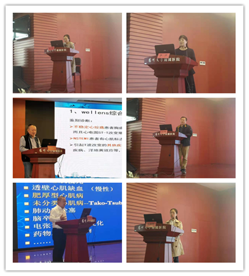 本次培训班邀请省、市多名心电专家授课。余萍教授作“房室结双径路的心电图改变”讲座;东部战区总医院原功能检查科主任李萍教授作“心电特殊现象”讲座;泰州市人民医院心功能科主任高琳琳作“动态心电图临床应用进展”讲座;苏北人民医院功能检查科主任陈勇作“心电图和心脏超声的对应诊断关系”讲座;我院心血管内科主任李爱华、焦云根博士、伍勇分别作“ACS心电图的特殊改变”“心律失常的紧急处理”“ST-T改变与临床”讲座。