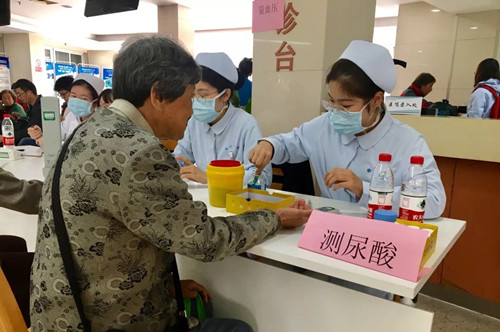 现场,专家分诊室为患者提供义诊咨询,他们根据每位患者的不同情况,耐心细致地给予相应的咨询意见和诊疗建议方案,对患者的常见病、多发病进行诊断、用药指导。张缪佳教授为风湿免疫科医护人员提供病例指导,为疑难病患者进行会诊,并走到患者床前,与他们面对面交流,提供检查和用药建议。活动中,风湿免疫科的专科护士们为就诊患者免费检测血尿酸、测量血压并发放各项风湿病科普宣传资料。专业技师还认真地为就诊患者免费测量骨密度,活动受到百姓的一致点赞。
