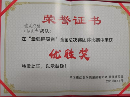年会还举行了“中国重症诊疗-最强呼吸音”全国总决赛。比赛项目包括基础理论和临床技能两部分,我院重症医学科青年医师袁文杰破层层难关,与队友一起,在全国数千名参赛选手中脱颖而出,最终获得团队优胜奖。会议期间,主办方还组织了“ICU健康跑”个人及团体接力赛。我院重症医学科田歌艳博士在1500米比赛中,获得三等奖。