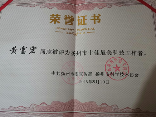 黄富宏获扬州市十佳最美科技工作者称号