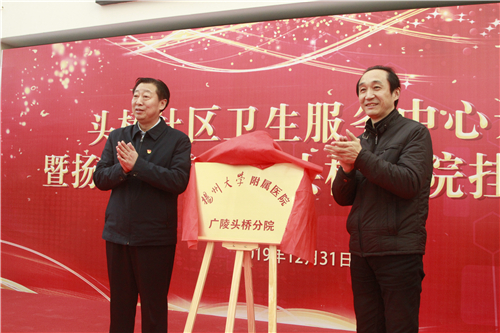 12月31日,扬州大学附属医院广陵头桥分院挂牌仪式在头桥社区卫生服务中心举行。广陵区委书记潘学元、扬州大学医学部主任刘歆农、扬州市卫健委副主任王骏、扬州大学附属医院党委书记王炜、院长殷旭东、纪委书记蔡拥军,以及广陵区领导周鸿钧、李彬、王兵等出席,广陵区副区长万潇潇主持仪式。