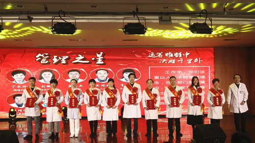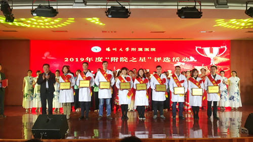院党委副书记、副院长单清宣读“附院之星”表彰决定,于克等10名同志获得“医疗之星”的称号;王艳等10名同志获得“护理之星”的称号;王磊等10名同志获得“科研之星”的称号;李霖等10名同志获得“教学之星”的称号;丁永玲等10名同志获得“管理之星”的称号;刁琰等10名同志获得“服务之星”的称号;消化内科等9个科室获得“团队之星”的称号。费坚及院领导分别为各奖项获得者颁奖,并与获奖者亲切握手,勉励大家珍惜荣誉、不忘初心、继续前进,为医院发展再创佳绩。
