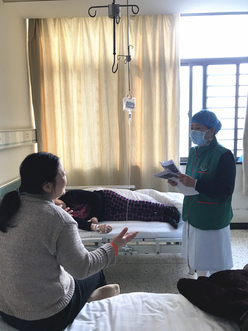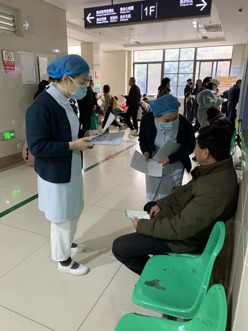 春节期间,报名参加活动的志愿者们根据活动分工,利用休息时间在医院门诊、病房、输液侯诊区、检验窗口等区域,给来院治疗的患者及陪护家属进行了防控疫情相关的知识宣教,教会他们如何正确佩戴口罩,并向其讲解防控指引、派发宣传单张。