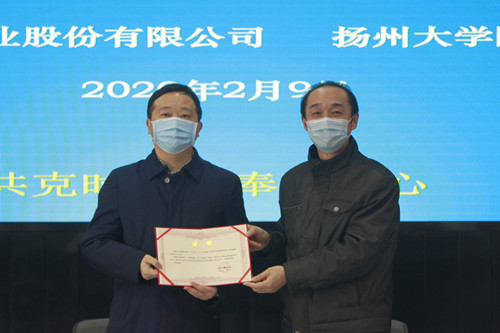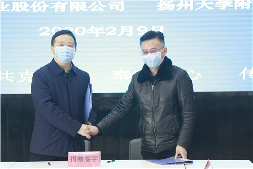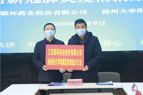 捐赠仪式上,江苏联环药业股份有限公司党委书记、董事长夏春来,扬州大学附属医院党委书记王炜分别讲话。