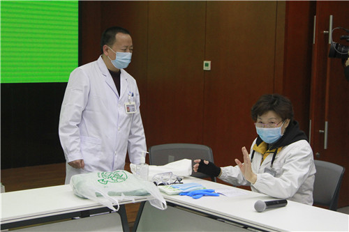 出征仪式前,医院为8名队员进行了专项培训。院防控工作技术专家组副组长金素萍、重症医学科主任刘微丽向大家详细讲解了应对新冠肺炎的感染防控流程、穿脱防护用品的正规流程以及各种有关防护的细节和注意事项。