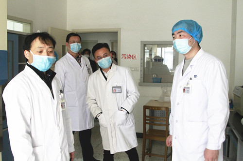 殷旭东一行先后深入查看输液室、急诊检验、急诊抢救室、血液透析中心、检验科、中心实验室等区域的疫情防控工作落实情况,并和工作人员交谈。