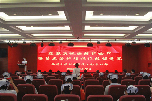 5月12日,是第109个国际护士节,下午,扬州大学附属医院在西区医院第一学术报告厅举行庆祝国际护士节暨第三届护理操作技能竞赛。扬州大学党委常委、副校长刘巧泉,美术与设计学院党委书记马雷、院长李玫、党委副书记周峰,护理学院党委书记刘佩健、副院长刘永兵,附属医院党委书记王炜、院长殷旭东、党委副书记、副院长单清、纪委书记蔡拥军、副院长刘艳秋、龚开政及市卫健委、扬大附院相关科室负责人、援鄂护士代表、医院第三届护理操作技能竞赛决赛参赛选手、临床护士代表等近200人参加活动。护理部主任袁媛主持活动。
