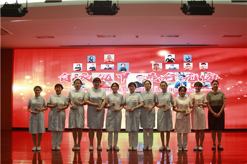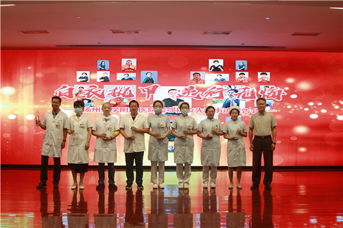活动中,院领导王炜、殷旭东、张文捷、蔡拥军、刘艳秋、王正兵为46名援湖北医疗队队员颁发扬州大学附属医院“援鄂抗疫先锋”奖杯。