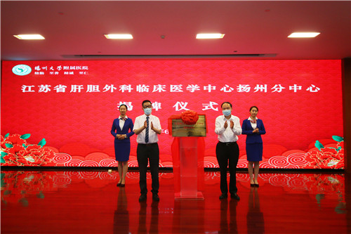 活动中,王学浩、焦新安共同为江苏省肝胆外科临床医学中心扬州分中心揭牌。余珽、汤琪云共同为江苏省神经内分泌肿瘤诊治中心扬州分中心揭牌。