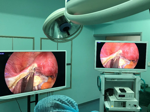 据了解,妇科自2018年3月3日开展首例经脐单孔腹腔镜手术以来,已成功完成了200多例,无论是从临床疗效,还是从人文关怀方面,均获得了较高的满意度。随着腹腔镜技术的蓬勃发展以及微创理念的进一步贯彻,单孔腹腔镜应运而生。利用脐孔天然的皱褶“掩盖”手术切口,能最大程度满足患者对术后美容的需求,同时具有降低术后疼痛、加快恢复等明显优势。对于巨大子宫肌瘤或者右侧宫旁以及阔韧带肌瘤患者,单孔腹腔镜下处理右侧子宫韧带及血管更方便、更安全。