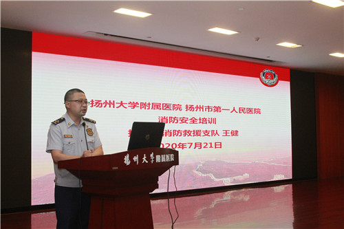 会议邀请到扬州市消防救援支队法制与社会消防工作科副科长王健,来院进行夏季高温防火工作的专题培训讲座。王健从火灾隐患排查、初期火灾扑救、人员自救逃生,灭火器材的使用方法,医院消防责任的划分以及高温季节消防安全工作等方面展开讲解。