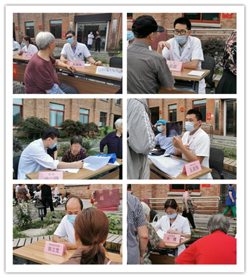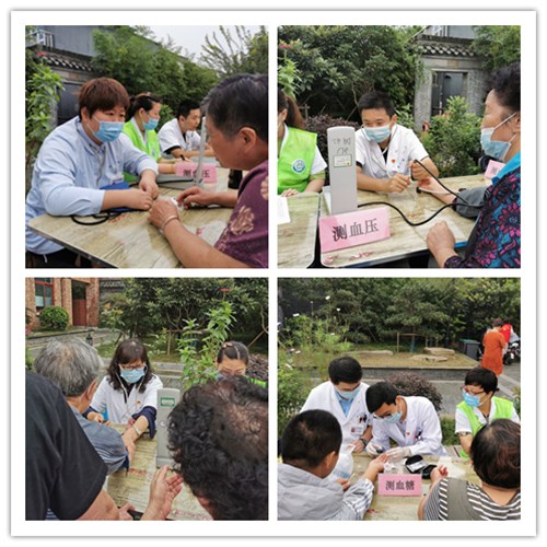 血压、血糖测量组的年轻医生及护理专业的党员热情为老年人测量血压及血糖,解答老年慢性疾病预防及治疗疑问,宣传健康生活方式。