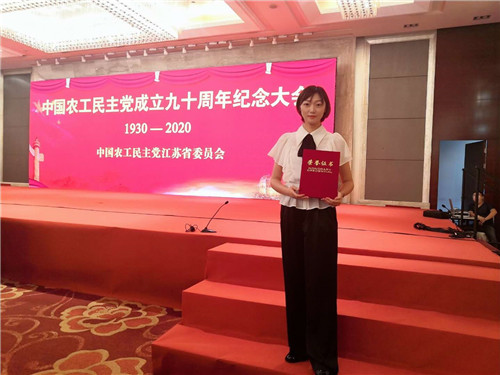 2020年8月9日是中国农工民主党成立九十周年,农工党中央、农工党江苏省委表彰了一批先进组织和个人。