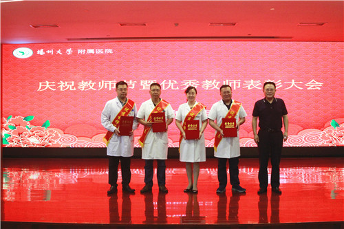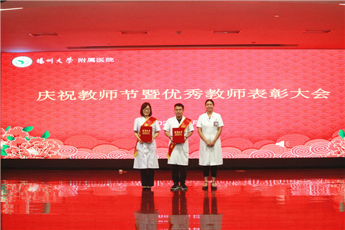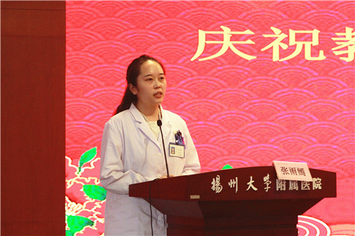 扬州大学附属医院副院长王正兵宣读2018-2020年度院级优秀教师名单;教师代表扬州大学附属医院老年医学科主任、全科医学科副主任殷安康在发言中强调,“行源于心,力生于志。”他表示,从教以来,他时刻不敢忘记自己教育的初心,在教育的路上历练匠心,用自己点点付出,默默践行着一个普普通通人民教师的事业追求。他强调,作为医院的一名临床教师,首先自己要有扎实的医学功底,其次还得学习如何将自己的本领传授给学生。他指出,虽然教学工作很辛苦,但是会督促老师们专业知识的学习和更新。做好教学工作,做一名优秀的临床教师,虽然辛苦,但很骄傲,因为治病救人和教书育人是太阳底下最光辉的职业,在收获学生尊重的同时,也会收获工作带来的快乐,收获这份职业独有的成就感和满足感;学生代表扬州大学研究生张雨嫣在发言中代表全体同学向老师们致以节日的祝福。她说,从古至今,尊师重教一直是中华民族的传统美德,任何人的成长和成才,都离不开老师的培养,社会的每一点进步和更新,无不饱含着老师的辛劳和奉献。每当我们在学习中遇到困难时是老师帮我们答疑解感,传给我们终生受用的宝贵财富,此时他们仿佛是我们手中的百宝箱;在人生旅途中,当我们彷徨,找不到正确的前行方向时,是老师带领我们走出困境,此时他们又像是一盏指路明灯;在我们感到孤独无助时,又是老师陪在我们身边,给我们温暖,此时的他们又仿佛是可供依靠的温馨港湾。