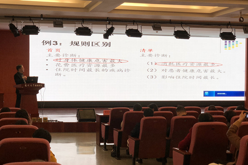 南京医科大学第二附属医院质量管理办公室主任李娟,南京大学医学院附属鼓楼医院信息中心主任吴良明等病案质量数据管理领域专家作专题讲座,他们结合国家三级公立医院绩效考核、江苏医疗服务综合监管平台、江苏省省级临床重点专科评审指标分析、病案首页质控评价报告解析等,从信息化、病案质控和数据应用以及绩效、付费变化与病案数据管理等多方面进行分享与交流,从典型疑难编码病案案例引发思考、展开探讨,解读共识和新进展,现场互动热烈,参会人员获益匪浅。