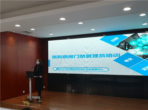 1月27日下午,总务处物业管理中心在西区医院第二学术报告厅召开西区医院新进病区门禁管理员岗前专项培训会议。总务处处长张靖博,物业管理中心主任赵烨,恒邦物业常务副总经理王秋萍等共计40余人参加会议。