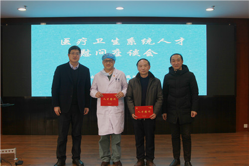 1月28日下午,扬州市医疗卫生系统人才慰问座谈会在我院西区医院第二学术报告厅召开。市委组织部人才工作处副处长裴旭东,市卫健委组宣处处长陆盛华,我院党委书记王炜、副院长龚开政,扬州市14家“名医工作室”代表,我院部分职能科室负责人参加会议。
