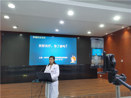 23日,肿瘤科医学博士、副主任医师刘申香通过医院微信视频号直播放射治疗的相关知识。