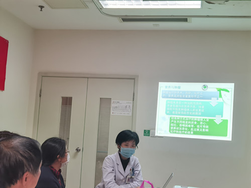 据了解,医务社工办公室经过前期1个月的需求评估,最终决定在肿瘤科开展肿瘤患者支持计划的系列活动,旨在扩大肿瘤患友交际圈,提高其生活质量,为患友及其家属提供必要的心理及社会支持。在评估过程中,医务社工办公室发现大多数患友和家属对化疗后的饮食相当关注,为积极响应患友的需求,该办公室邀请医院临床营养科营养师柳沁元对癌症饮食相关知识进行宣教,生动又通俗易懂的宣教内容让大家听得聚精会神。讲座结束后,患友和柳沁元积极互动,大家针对自身的问题进行咨询,纷纷表示学到了很多实用的饮食小知识,病房文化生活得到了极大丰富。