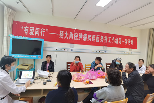 4月28日下午3点,由医务社工办公室牵头的“一路上有你”主题医务社会工作小组第一次活动在肿瘤科示教室举行。活动得到肿瘤科医务社会工作小组组长、副主任医师王颖的支持。肿瘤患者和家属共计20余人参加活动。