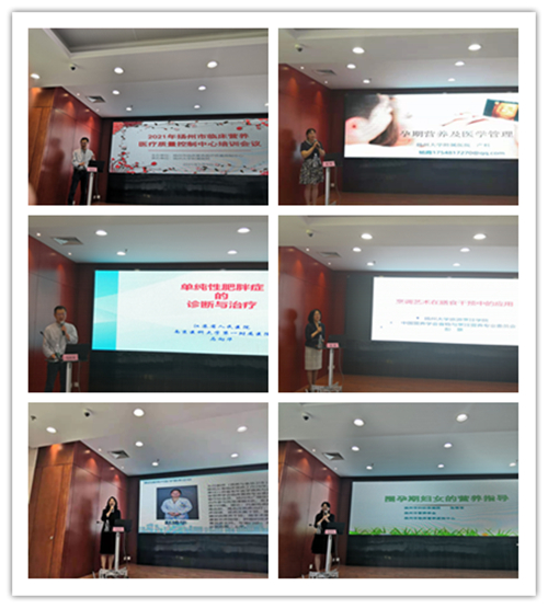 5月9日,扬州市临床营养医疗质量控制中心召开2021年第一次主题为孕产期代谢综合征的质控培训会议。市卫健委医政处处长缪彦、我院副院长刘艳秋出席会议。江苏省临床营养医疗质量控制中心主任马向华受邀参加会议,并作肥胖病的专题讲座;校食品与卫生专业彭景教授、我院产科副主任、主任医师杨霞、市妇幼保健院副主任医师张翠军、苏北医院临床营养科主任医师赵绮华等作孕产期代谢综合征专题讲座;我院临床营养科营养医师周雅、柳沁元、邹蓓蓓、徐传翀等作人体成分分析仪实践培训。