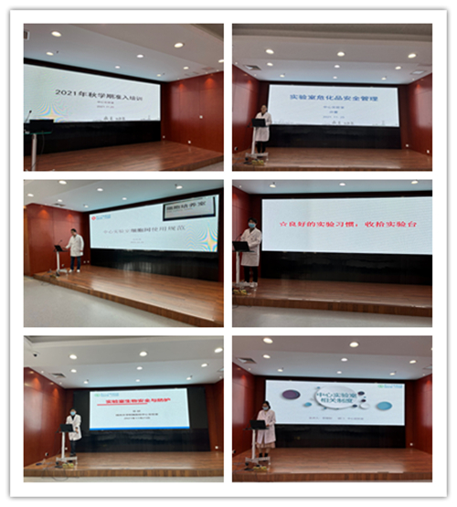 本次培训以“实验室安全”为主课,分别从“中心实验室规章制度”“细胞培养室使用规范”“生化间使用规范”“实验室生物安全与防护”“实验室危化品安全管理”等5个方面进行讲解介绍。5个选题培训旨在引导学员全面深刻领会实验室安全的重要性,提高安全意识,同时具备对实验室的运行及开展实验注意事项的初步了解,为以后在中心实验室顺利开展实验工作奠定一定的基础。