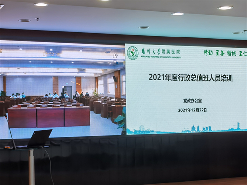 会上,党政办公室副主任唐小妹解读了《医院行政总值班管理办法》(院发2021〔100〕号),介绍了值班人员岗位职责、值班规范与要求以及行政总值班持续改进的举措。医务部副主任雎胜勇针对行政总值班过程中出现的群体中毒、群体性创伤、停电、电梯困人等事件,逐一介绍处理流程和措施。公共卫生管理处首席督导曹彬讲解了传染病及群体性不明原因疾病的报告管理。行风办公室主任杨昌松传达了投诉接待管理的相关要求,分享了接待投诉管理的经验与技巧。