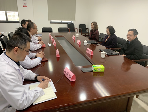 我院党委副书记单清对专家组的到来表示热烈欢迎,并与专家组就肿瘤规范化、同质化治疗以及相关质控工作作深入交流。我院党委委员冷俊岭及医务部、肿瘤科、呼吸与危重症医学科、甲乳外科、药剂科等相关部门、科室负责同志参加迎查会。