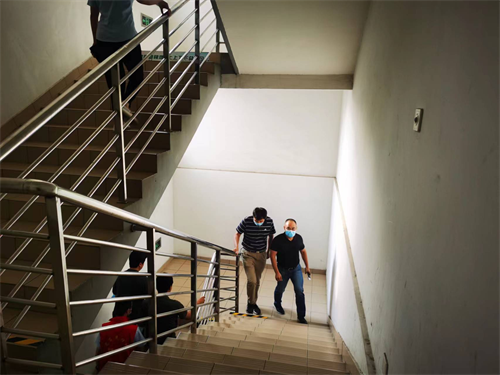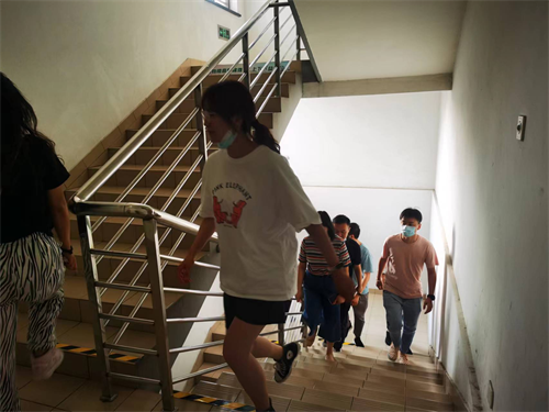 运动员们首先在后勤保障处张靖博、姜修平两位督导的引导下,参观了解我院西区负一楼的供电系统机房和中央空调系统机房等供能设备设施的运行情况。参观结束,单清向参与者强调安全问题及爬楼过程的注意事项。随着一声令下,所有参与者纷纷出发,大家一鼓作气,经过24个楼层,644个台阶,直上楼顶大平台。