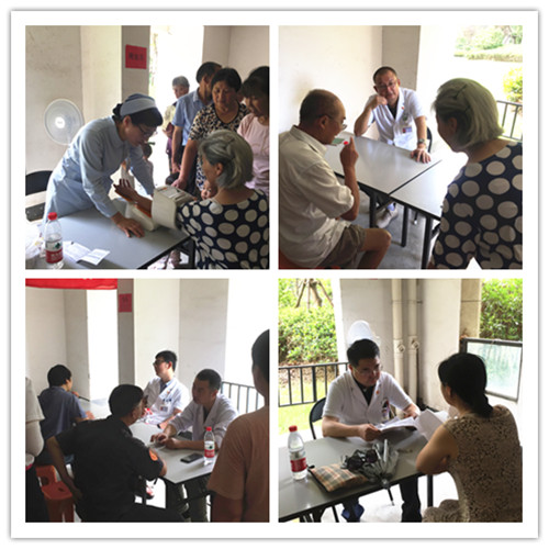 骄阳似火、酷暑难耐,但是丝毫没有阻挡当地居民的热情。早上8点,大家准时来到活动现场。西区外科科护士长潘海龙、神经外科主治医师王友伟为大家测血压、血糖,细致解答大家疑问;神经外科副主任程诚、副主任医师王鸿生、骨科副主任杜建伟、副主任医师吉勇分别根据当地居民的病例报告,为大家提供义诊咨询,并针对不同病症和个体差异提出合理的诊疗建议和治疗方案。耐心、细致的检查和讲解帮助居民更深入地了解了自己的疾病,获得大家的好评。