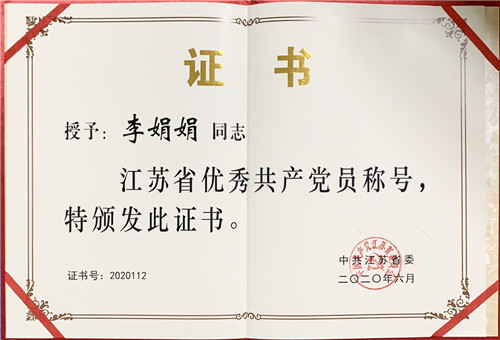 李娟娟获评江苏省优秀共产党员并在省委表彰大会上作事迹报告