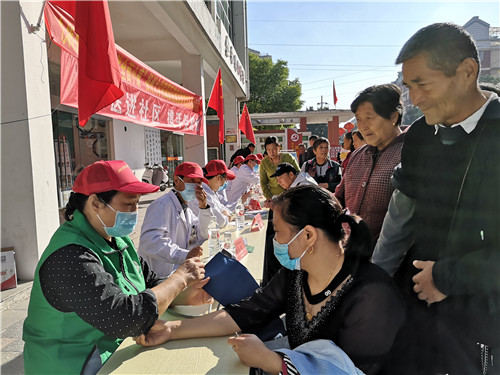 10月11日,院离退休党总支携手后勤、内科、外科等党支部在施桥镇扬子新苑社区开展“传承初心、服务扬城”院60周年院庆巡回义诊暨“决战脱贫攻坚、决胜全面小康”2020年全国扶贫日主题义诊活动,为社区居民群众送去健康知识和义诊服务,受到热烈欢迎。