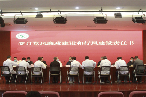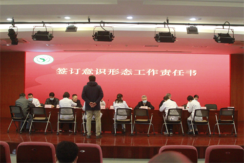 会上,全体院领导分别与党总支书记、党支部书记、职能部门和临床医技科室负责人代表签订党建目标考核责任书、党风廉政建设和行风建设责任书、意识形态工作责任书。与会同志集体观看警示教育专题片《园蠹》。