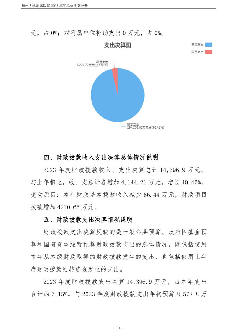 扬州大学附属医院2023年度单位决算公开