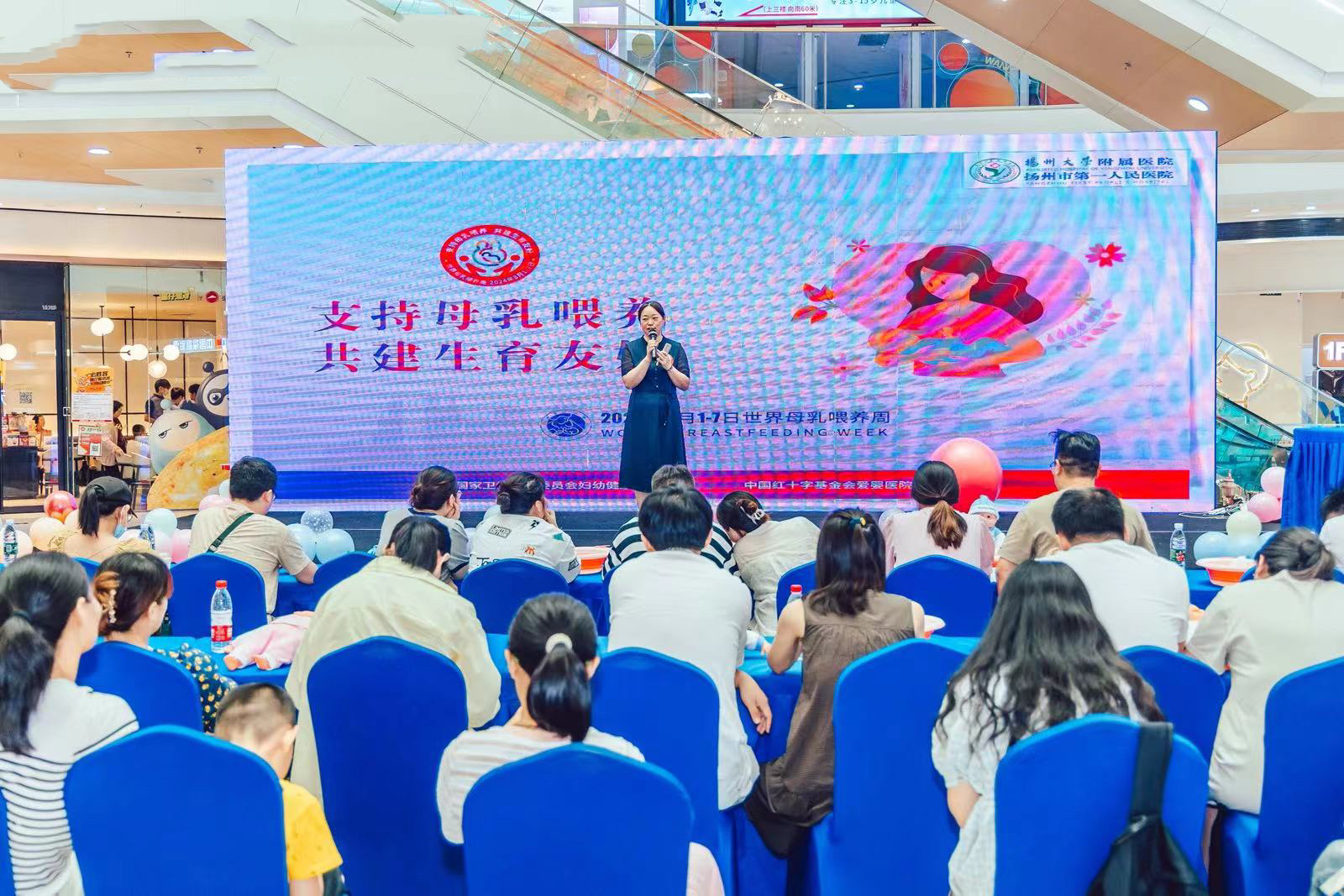 交汇点讯 在第33个世界母乳喂养周来临之际,为进一步普及母乳喂养知识,提高母乳喂养率,助力宝宝健康成长,8月3日,扬州大学附属医院在万达广场举办主题为“支持母乳喂养,共建生育友好”助产沙龙活动。扬大附院产科主任杨霞说,这场活动通过舞动生命,快乐分娩、新生儿沐浴与抚触实操、“分娩吧爸爸”等活动,以爱心滋养初生,让宝宝们在爱的怀抱中茁壮成长。