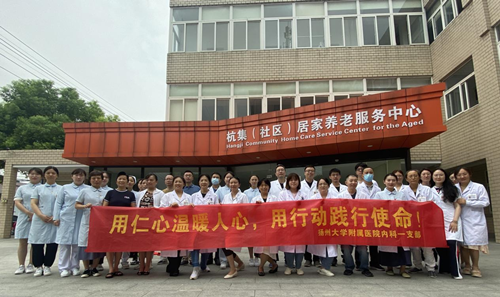 在第五个“中国医师节”到来之际,8月20日,内科第一党支部在杭集社区,开展“用仁心温暖人心,用行动践行使命”主题党日义诊活动,32名共产党员、入党积极分子,11名民主党派党员、群众参加活动。 本次义诊组织了来自神经内科、内分泌科、全科医学科、心血管内科、急诊科、骨科、妇科及超声科等科室的医护人员参加。活动内容丰富,为当地居民提供血压血糖监测、健康教育、慢病管理、康复指导、骨质疏松症多学科会诊、卒中筛查、心脏彩超检查等。 当日上午,大家来到杭集社区,兵分两路,分别在杭集社区居家养老服务中心和杭集社区卫生服务中心居家养老服务中心开展义诊活动。听说有扬大附院的专家来,炎炎夏日挡不住前来问诊群众的热情,早上7点已有不少群众在义诊现场排队等候。按照疫情防控要求,工作人员在现场引导群众到相应专家处候诊,使得现场群众秩序井然。一位老大爷独自一人“开”着自己的电动轮椅来到现场,动情地说:“我腿脚不利索,去扬大附院看病很不方便,听说你们要来,我一早就来了”。医护人员顾不得片刻休息,顶着烈日马上投入到工作中,认真地为群众测量血压血糖、问诊听诊,检查身体,仔细询问病情,耐心解答每位患者提出的问题,针对不同病症给出合理化的诊疗建议和治疗方案,把健康理念带给广大群众。 在杭集社区居家养老服务中心,神经内科符长标、符雪涛、吴银艳,心血管内科李南阳为