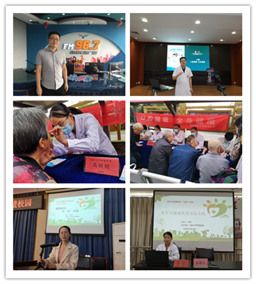 2020年9月20日是第32个“全国爱牙日”。为提升大众口腔健康素养水平、促进口腔健康行为的形成,我院以爱牙日为契机,在爱牙日前后,围绕今年的宣传主题“口腔健康全身健康”,以口腔健康与全身健康的关系为切入点,通过专家讲座、义诊咨询、电台科普、抖音直播等形式,开展爱牙日系列活动。16日、20日,口腔科主治医师尚进分别走进电台967健康学堂和医院抖音直播间,就百姓平时比较关心的“要不要洗牙?”“洗牙能使牙齿变白吗?”“为什么会‘老掉牙’?”“牙刷牙膏该如何选择?”“为何我早晚刷牙,还会有蛀牙?”“智齿不疼不痒,我也要拔吗?”“反复口腔溃疡,会不会癌变?”等问题为大家答疑解惑。18日,我院健康教育“五进”活动走进竹西街道黄金社区,为社区居民举办爱牙日义诊宣教活动,口腔科医师高娟娟为前来咨询的居民进行口腔检查、口腔健康知识科普和义诊咨询。24日,口腔科医师邵苗苗为邗江实验学校的小学生进行爱牙常识讲座,教小朋友正确的刷牙方式、培养健康的口腔习惯、平衡膳食预防龋齿等;临床营养科主治医师张舒为冯庄社区居民讲解健康膳食模式的重要性,她强调饮食多样化既有利于预防心血管疾病、糖尿病、肥胖等慢性病,也有利于牙齿的发育和预防龋病、牙周病、牙酸蚀症和口腔癌等口腔常见病。系列活动的开展,为居民普及了口腔健康知识,增强了居民口腔健康观念和自我口腔保健意识,有利于推动居民形成均衡饮食、早晚刷牙等有利于口腔健康的行为。