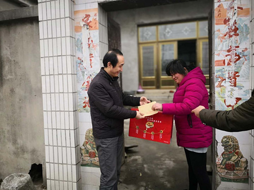 在新春佳节即将到来之际,我院组织开展了新春送温暖活动,走访慰问了病困党员职工、双拥结对单位和现役军嫂,以及扶贫结对村贫困家庭,并及时送上医院和党组织的新春问候和祝福。1月28日下午,院党委书记王炜带领党办工作人员前往高邮市汤庄镇双屏村,走访慰问该村5户病困家庭,上门入户送上慰问品、慰问金和新春祝福,使贫困群众深切感受到了党的帮扶政策和医院的暖心关怀。1月29日开始,院党委书记王炜、纪委书记蔡拥军带领党办和人武部工作人员走访慰问15名现役军嫂、9名病困党员职工和双拥结对单位扬州市广陵区人武部。将慰问金和慰问品送到他们手中,祝愿他们度过一个欢乐祥和的新春佳节。此次新春送温暖活动是院党委贯彻落实习近平新时代中国特色社会主义思想和党的十九大精神的重要举措,体现了医院对病困党员职工和贫困群众的关心爱护之情,以及拥军优属、拥政爱民工作。