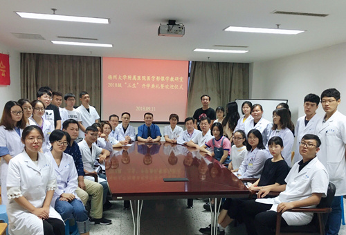 9月11日,影像科举办2018级“三生”(实习生、研究生、住培生)开学典礼暨欢迎仪式。影像科实习生、研究生、住培生、医学影像学教研室、放射科规培基地、教育处等相关负责人及教研室秘书等共35人参加会议。会议由教研室秘书赵义主持。教育处副处长焦云根在欢迎仪式上致辞。他对同学们加入扬州大学附属医院这个大家庭表示欢迎。同时,焦云根结合自己的学习、工作经历,向大家传授专业知识学习的技巧,他勉励大家要勤勉好学、悉心钻研,为做一名新时代的白衣天使打下坚实的基础。影像科主任、医学影像学教研室主任王苇介绍了我院及影像科的发展历程与现状。他希望同学们严以律己、勤以自强,争取做一个有文化、高素养的医务工作者;影像科副主任、放射科规培基地负责人杜芳围绕教学的基本建设、教学的过程管理、教学的质量控制三方面,对医学影像学教研室的教学工作进行了全面、系统的讲解;医学影像学教研室秘书蔡玉建针对专业型研究生和规培生进行了入科教育和岗前培训。近年来,我院不断推进实习生、研究生、住培生的教育教学工作,为培养理论知识扎实、操作能力娴熟的医务工作者不断努力。
