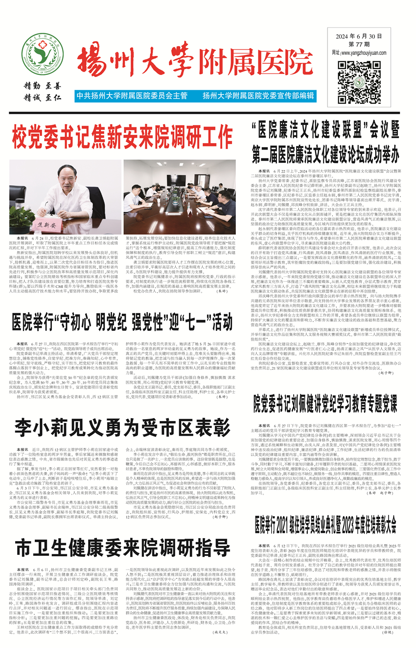 《扬州大学附属医院》第77期(2024年6月30日第1版)